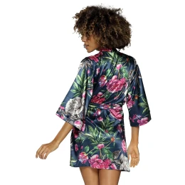 Noční košile značky Dkaren. Model DK-P-001. Výrobek je vyroben ze 100% polyesteru. Vybavení výrobku: saténový dárek s květy. Místo zapínání: vpředu. Noční košile se zapíná na zavazování. Délka rukávu: dlouhý rukáv. Dámský výrobek.