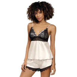 Noční košile značky Dkaren, model Ola, vyrobená ze 100% polyesteru, s nastavitelnými ramínky, délka: krátká, ženská, výstřih: špičatý.