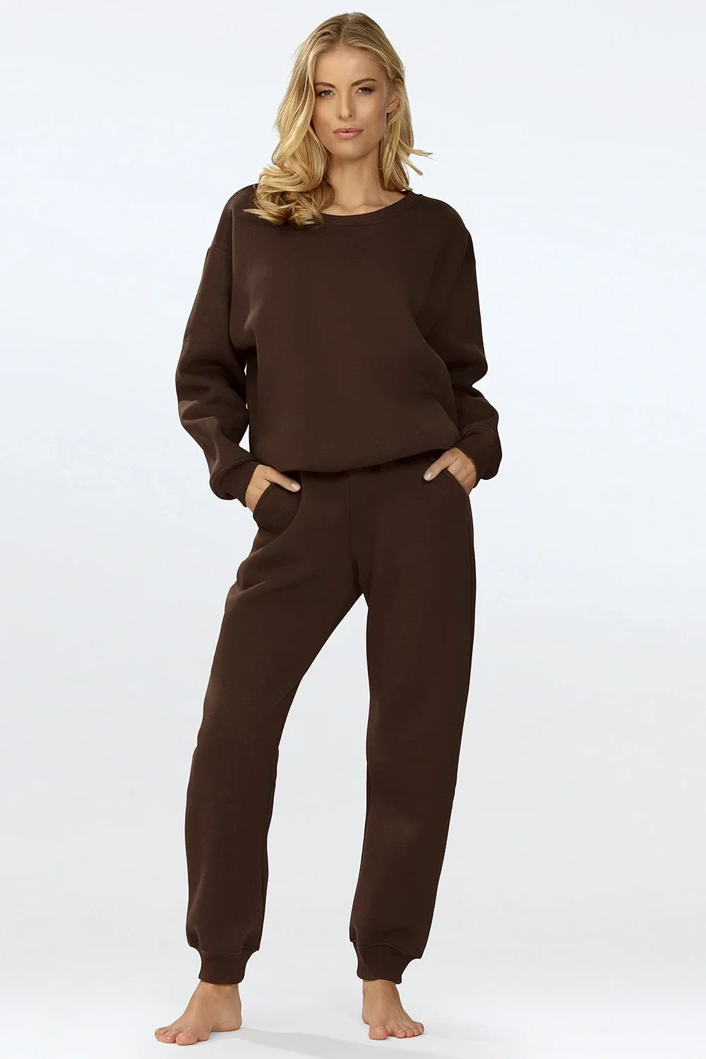 Souprava značky Dkaren, model Rehema-Kpl. Výrobek je vyroben z 95 % bavlny, 5 % elastanu. Má kapsy. délka rukávu: dlouhý rukáv. délka: dlouhá. dámský výrobek. typ výstřihu: kulatý.