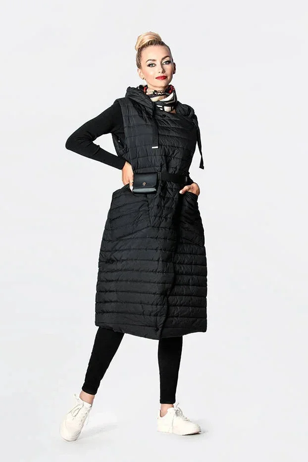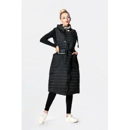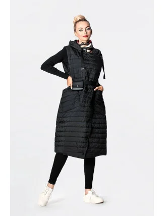 Dlouhá černá dámská prošívaná vesta (JIN219)