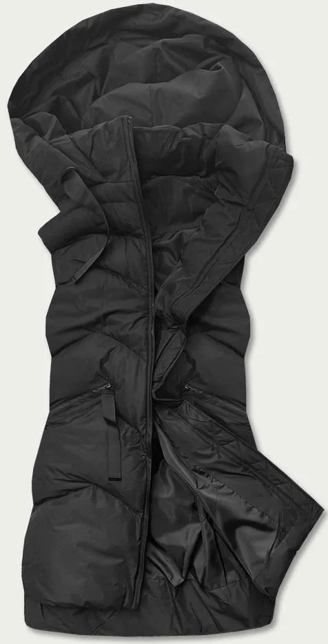 Dlouhá černá dámská vesta s kapucí (5M788-392)