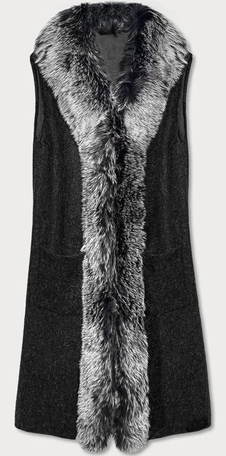 Vesta je obšitá kožešinou, zapíná se jedním háčkem a má dvě kapsy. Model obsahuje přídavek vlny. Vesta má délku pod kolena.