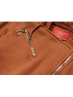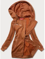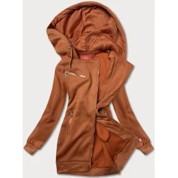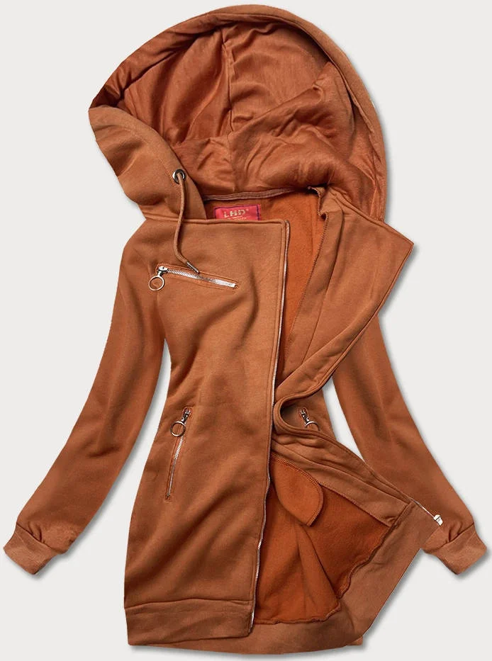 Dlouhá dámská mikina v karamelové barvě s kapucí (AMG-18)
