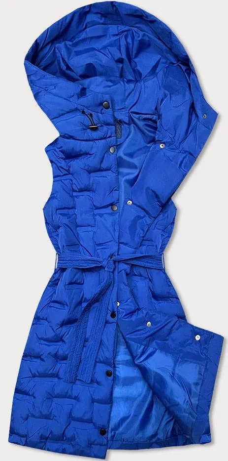 Dlouhá dámská vesta v chrpové barvě s páskem (JIN217)