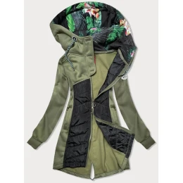 Dlouhá rozepínací dámská mikina v khaki barvě (AMG-819)