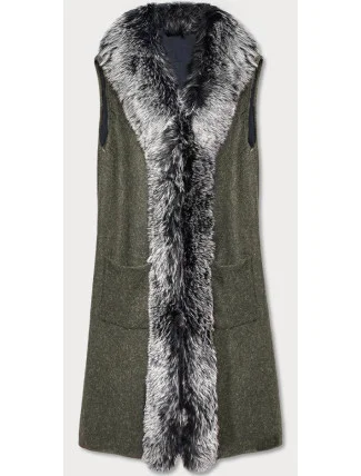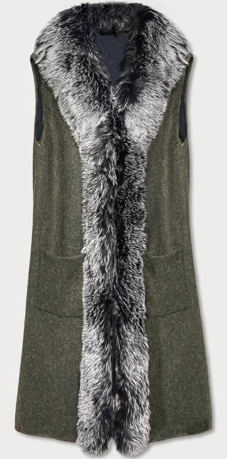 Dlouhá vesta v khaki barvě s kožešinou (F51010-4)