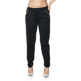 Volné kalhoty se zlatým lemováním. Zavazování v pase pomocí pásku, šikmé kapsy.