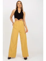 Dámské dlouhé kalhoty s vysokým pasem a zapínáním na zip a knoflík. Kapsy na bocích. Ideální k různým outfitům.