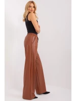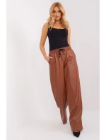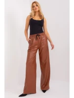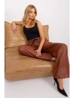 Dlouhé kalhoty z ekologické kůže se zateplením. Kalhoty s vysokým sedem a vázáním, s kapsami na bocích. Návrh pro mnoho příležitostí.