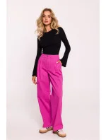 Stylové dámské kalhoty vyrobené z vysokokvalitní bavlněné látky. Vyznačují se širokými nohavicemi, které zajišťují pohodlí a elegantní vzhled, a stehnovými záhyby v pasu, které jemně zdůrazňují siluetu. V pase je elastický pás, co zaručuje pohodlí a ideální přizpůsobení. Kalhoty se zapínají na knoflík a zip, co přidává praktičnost. Vkládané boční kapsy nabízejí další funkčnost. Navrženy a vyrobeny v Polsku, kombinují moderní design s vynikajícím řemeslem.