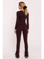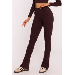 Legíny z žebrovaného bavlněného úpletu pro pohodlný a stylový vzhled. Přizpůsobený střih perfektně sedí na postavě a elastický pas zajišťuje pohodlné nošení po celý den. Nohavice jsou ve spodní části mírně rozšířené a zakončené jemnými bočními rozparky, které jim dodávají módní nádech. Tyto legíny, navržené a ušité v Polsku, kombinují funkčnost s moderním designem a jsou ideální pro každodenní styling.
