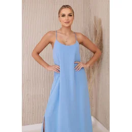 Dlouhé šaty bez ramínek modrý