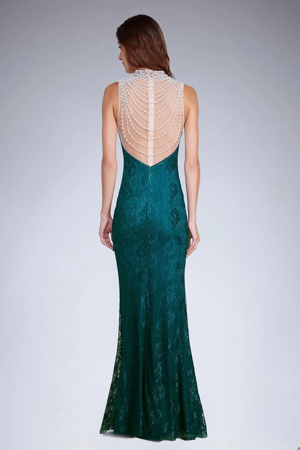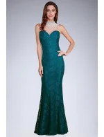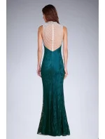 Dlouhé šaty ve tvaru mořské panny v zelené barvě. Vrchní vrstva šatů je vyrobena z krajky. Šaty se zapínají na krytý zip. Ideální na večerní párty.