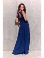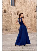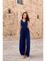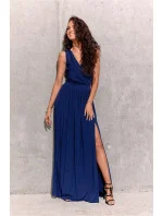 Dámské společenské šaty SOKY SOKA s perličkami a krajkou dlouhé tmavě modré - Tmavě modrá / XL - SOKY&SOKA