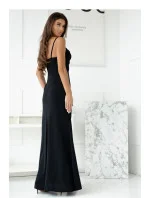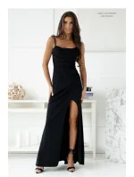 Dlouhé šaty s přiléhavým střihem a nastavitelnými ramínky, zapínání na skrytý zip. Hluboký výstřih, spodek s dlouhým rozparem. Ideální volba na mnoho příležitostí.