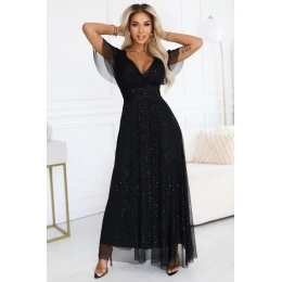 Elegantní dlouhé večerní šaty s podšívkou v černé barvě jsou návrhem značky Numoco Basic, vytvořeným s ohledem na výjimečné příležitosti. Lesklý materiál s jemným brokátovým dokončením krásně odráží světlo, přidávající kreaci jedinečný půvab. Výstřih ve tvaru písmene V decentně zdůrazňuje poprsí, zatímco lehké, vzdušné rukávy dodávají celku lehkost a eleganci. Rozkročený spodek maxi šatů dělá z kreace dokonalý tanec, zároveň zeštíhlí postavu. Je to ideální volba na svatbu, Silvestra, maturitní ples nebo elegantní banket. Vsadte na nadčasovou eleganci a vyberte si šaty, ve kterých se budete cítit výjimečně během každé slavnostní události. Evropská výroba.