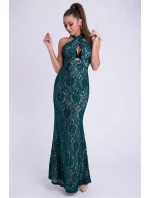 Dlouhé sexy šaty bez rukávů s hlubokým výstřihem. Šaty pokryté zelenou krajkou. Ideální na večerní procházku.
