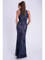 Dlouhé sexy šaty bez rukávů s hlubokým výstřihem. Šaty pokryté tmavě modrou krajkou. Ideální na večerní procházku.