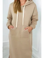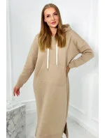 Dlouhé šaty s kapucí světle béžová