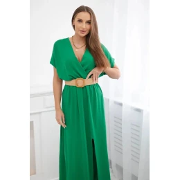 Dlouhé šaty s ozdobným páskem 6012F zelené - Kesi