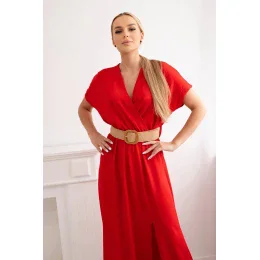 Dlouhé šaty s ozdobným páskem červené