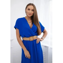 Dlouhé šaty s ozdobným páskem chrpově modré barvy
