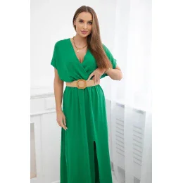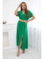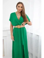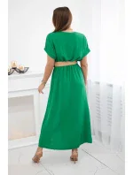 Dlouhé šaty s ozdobným páskem zelené