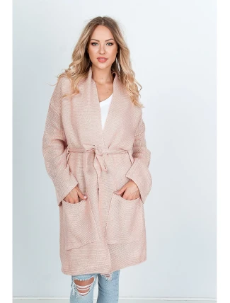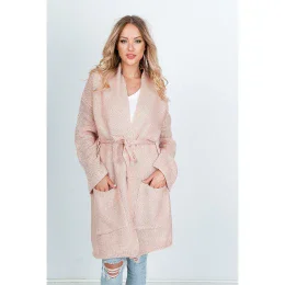 Béžovo/růžovo/šedá trojbarevná dlouhá dámská mikina s kapsami (5869)