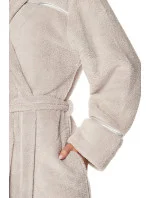 Župan má šálový límec. Model je ozdobený saténovým prošitím. Župan má na bocích kapsy a v pase se zavazuje.