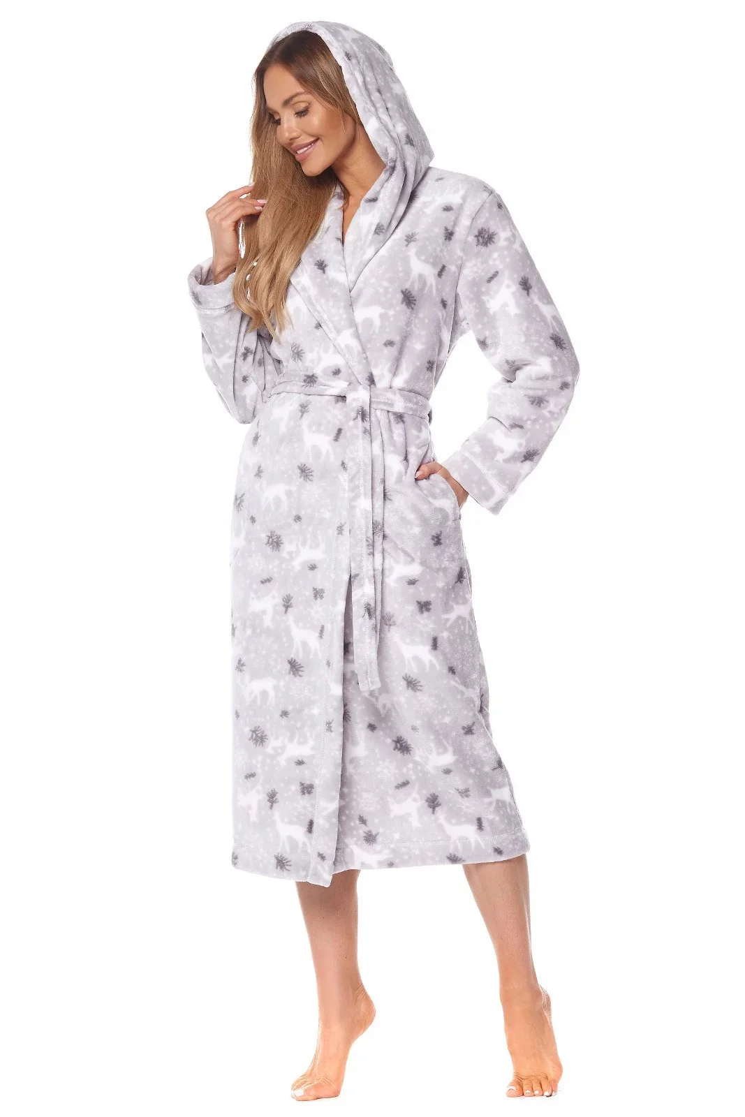 Dlouhý dámský župan 2126 Winter šedý - L&L