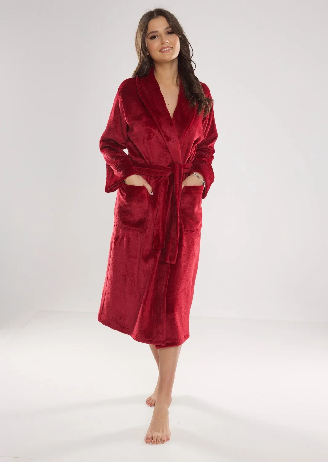 Dlouhý dámský župan, který je vyrobený z měkkého materiálu příjemného na dotyk.