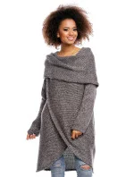 Dlouhý svetr s širokým, volným rolákem s asymetrickým, překrývajícím se předním dílem je elegantní a jedinečný návrh pro ženy, které ocení pohodlí, teplo a originální vzhled. Svetr lze nosit samostatně nebo jako další pokrývku. Kabátek je vyroben z měkké a nadýchané příze, obléká se přes hlavu.