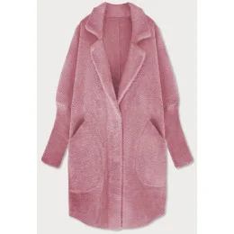 Dlouhý vlněný přehoz přes oblečení typu "alpaka" v lososové barvě (7108)