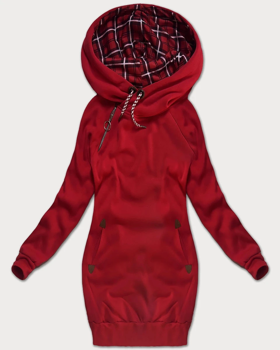 Červená dlouhá dámská mikina (AMG-738/1)