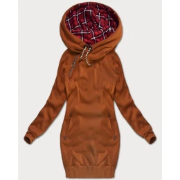 Dlouhá dámská mikina v karamelové barvě (AMG-738/1)