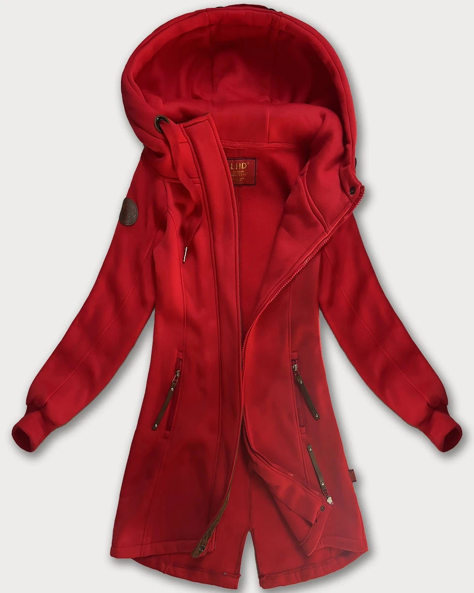 Červená dlouhá dámská mikina s kapucí (AMG-675/2)