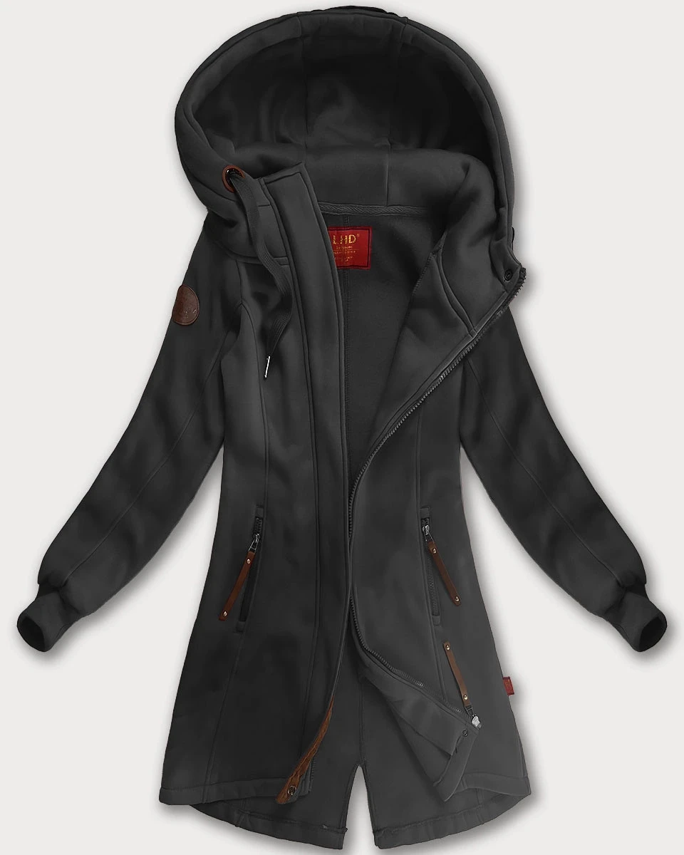 Dlouhá dámská mikina v grafitové barvě s kapucí (AMG-675/2)