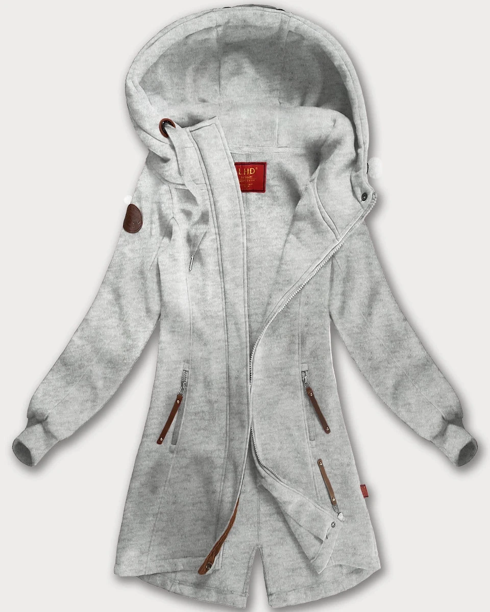 Světle šedá dlouhá dámská mikina s kapucí (AMG-675/2)