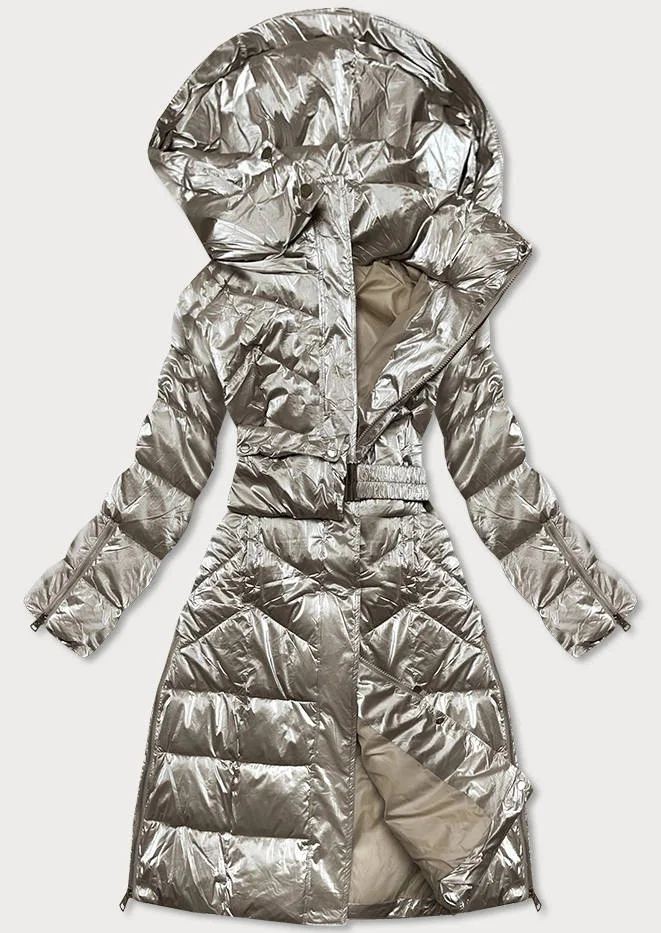 Béžová dlouhá lesklá dámská zimní bunda (775)