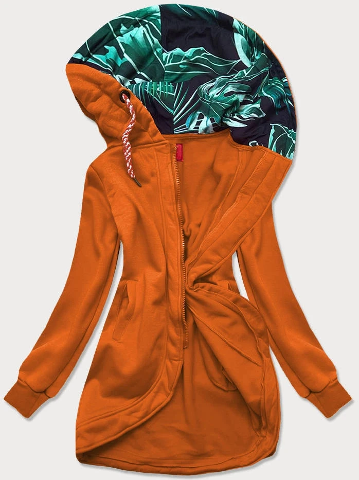 Dlouhá dámská rozepínací mikina v karamelové barvě (AMG815)