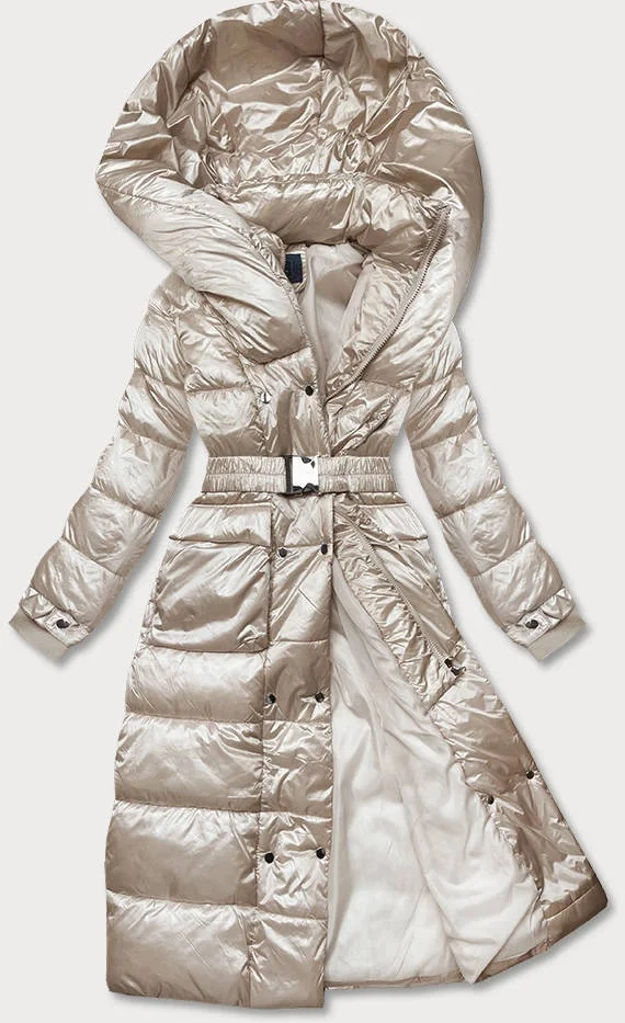 Dlouhá béžová dámská bunda s opaskem (AG1-J9090)