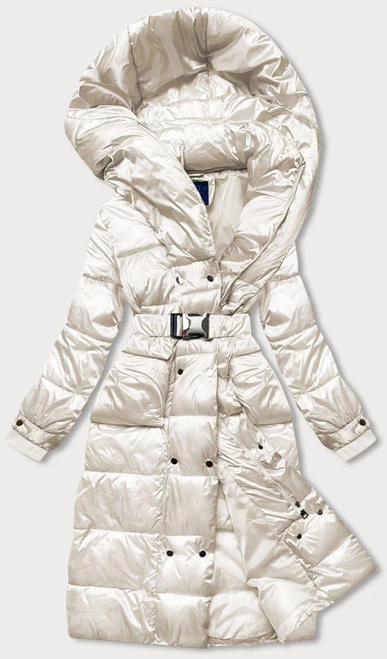 Béžová dlouhá dámská bunda s opaskem (ag8-8002)