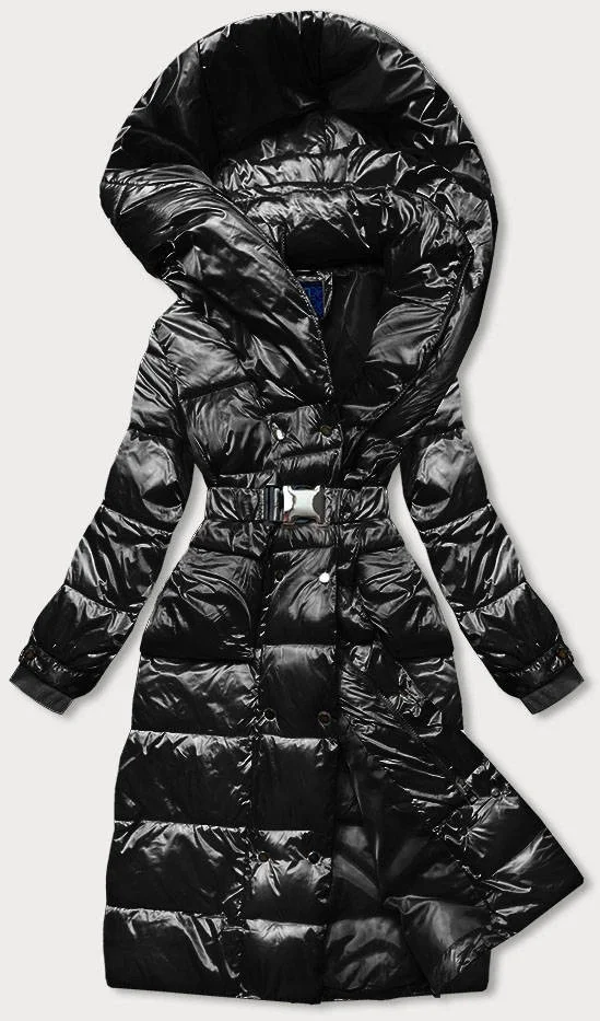 Černá dlouhá dámská bunda s opaskem (ag8-8002)