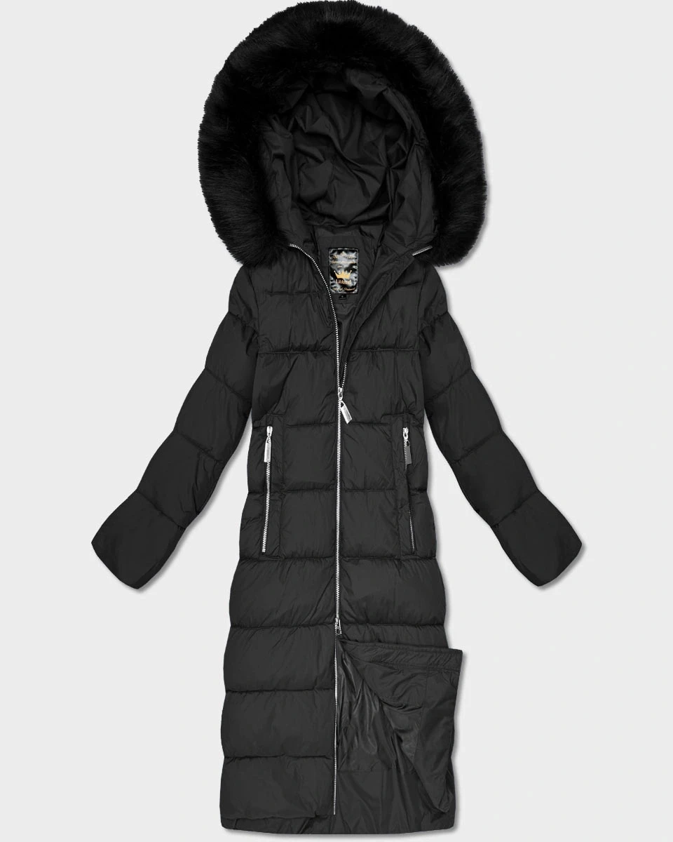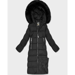 Černá dlouhá dámská zimní bunda s kapucí (7688BIG)