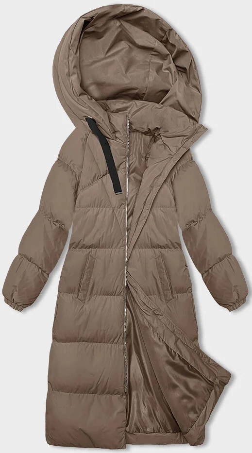 Tmavě béžová dlouhá hrubší dámská bunda s kapucí (5M3163-84)