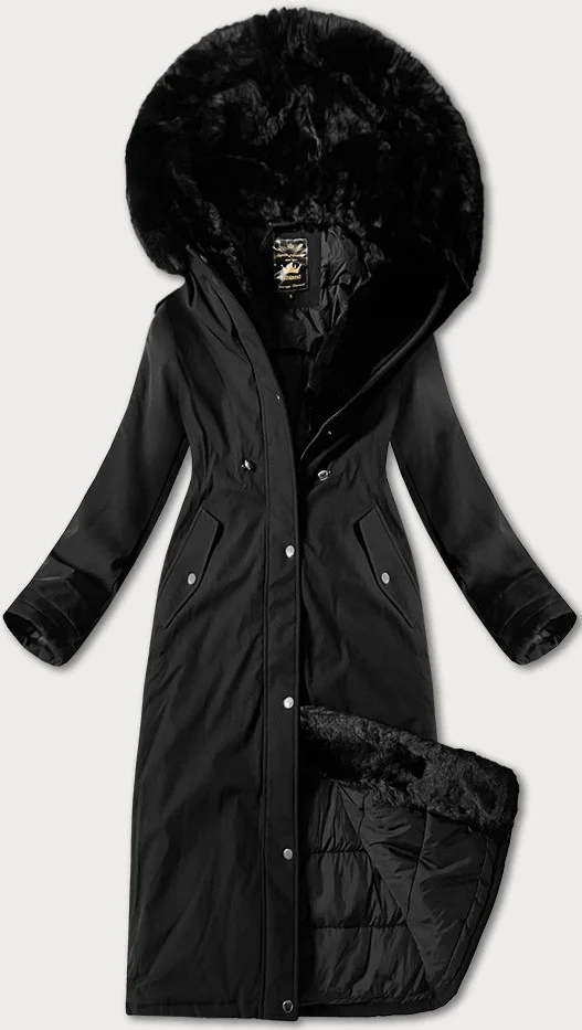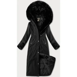 Černá dlouhá hrubší zimní bunda s kapucí Libland (7614)