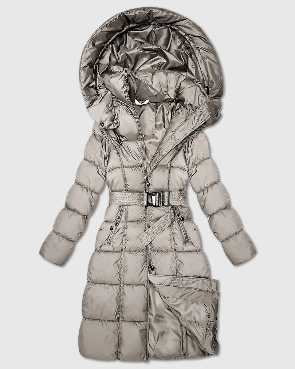 Béžová dlouhá a hrubší zimní bunda s opaskem Minority (P3-6033-62)