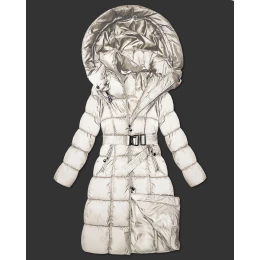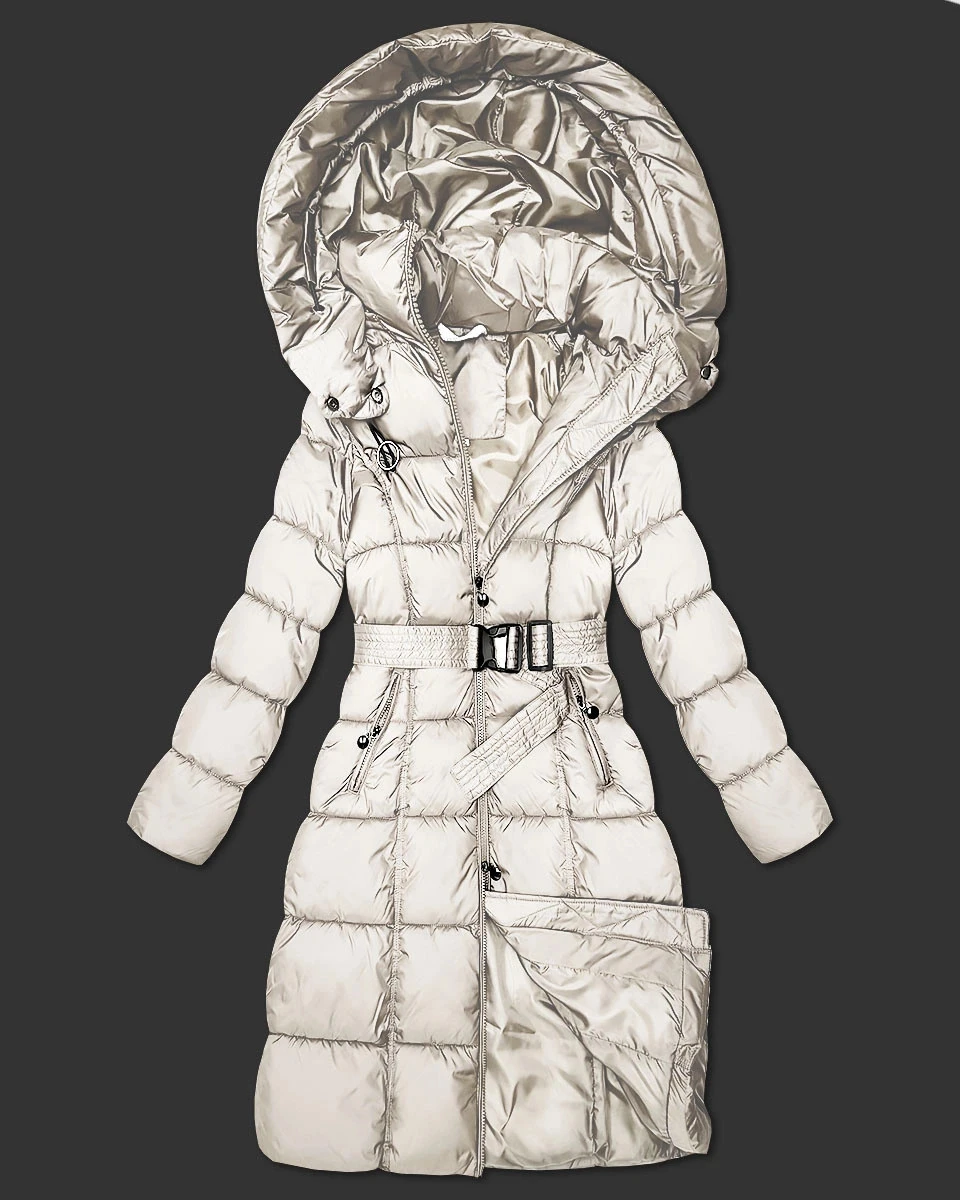 Dlouhá a hrubší zimní bunda v barvě ecru s opaskem Minority (P3-6033-12)