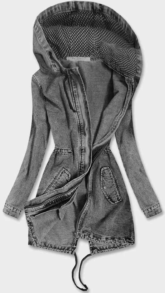 Dlouhá černá dámská džínová bunda s kapucí (C122-H)