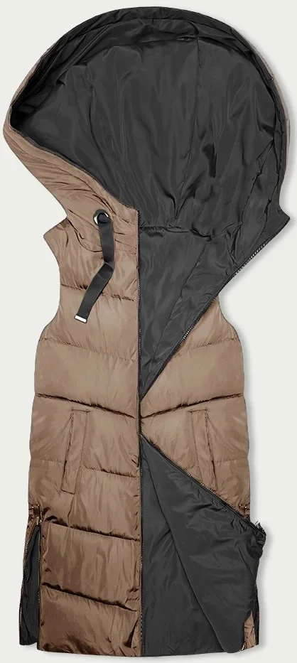 Béžovo-grafitová dlouhá dámská oboustranná vesta (B8248-12)